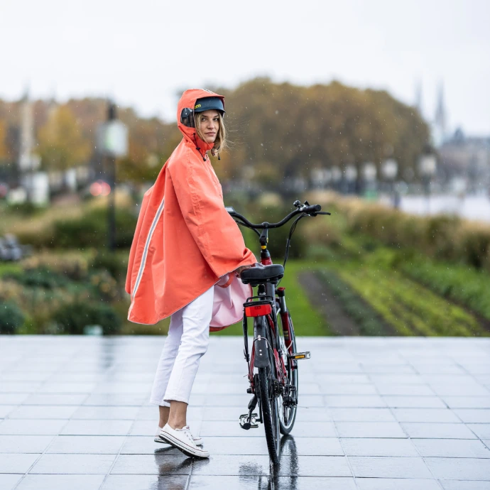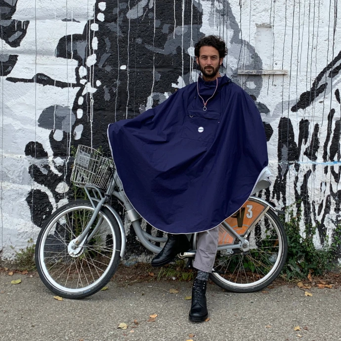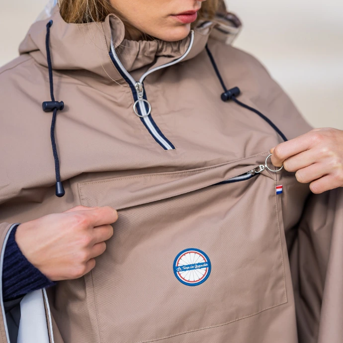 Le tissu polyester recyclé utilisé pour les capes de pluie est conforme GRS ( Global Recycled Standard, certifié par Control Union).Un poche pour les clés et portable à l'avant